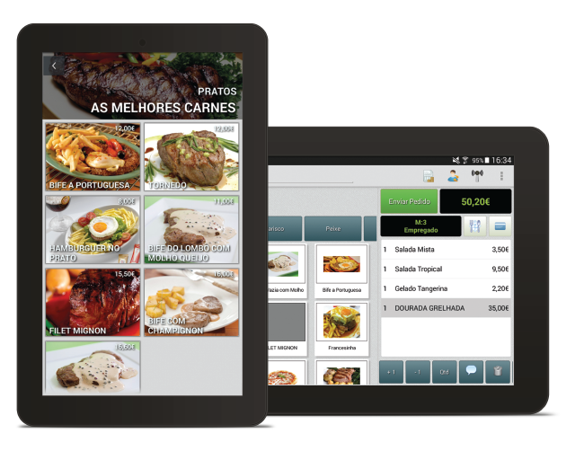 • Modo take-away com ecrã de cliente e ecrã de confirmação de entregas para funcionários
